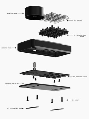 Crafted from a solid block of CNC-machined aluminum, this sleek macropad features one knob and nine customizable switches.